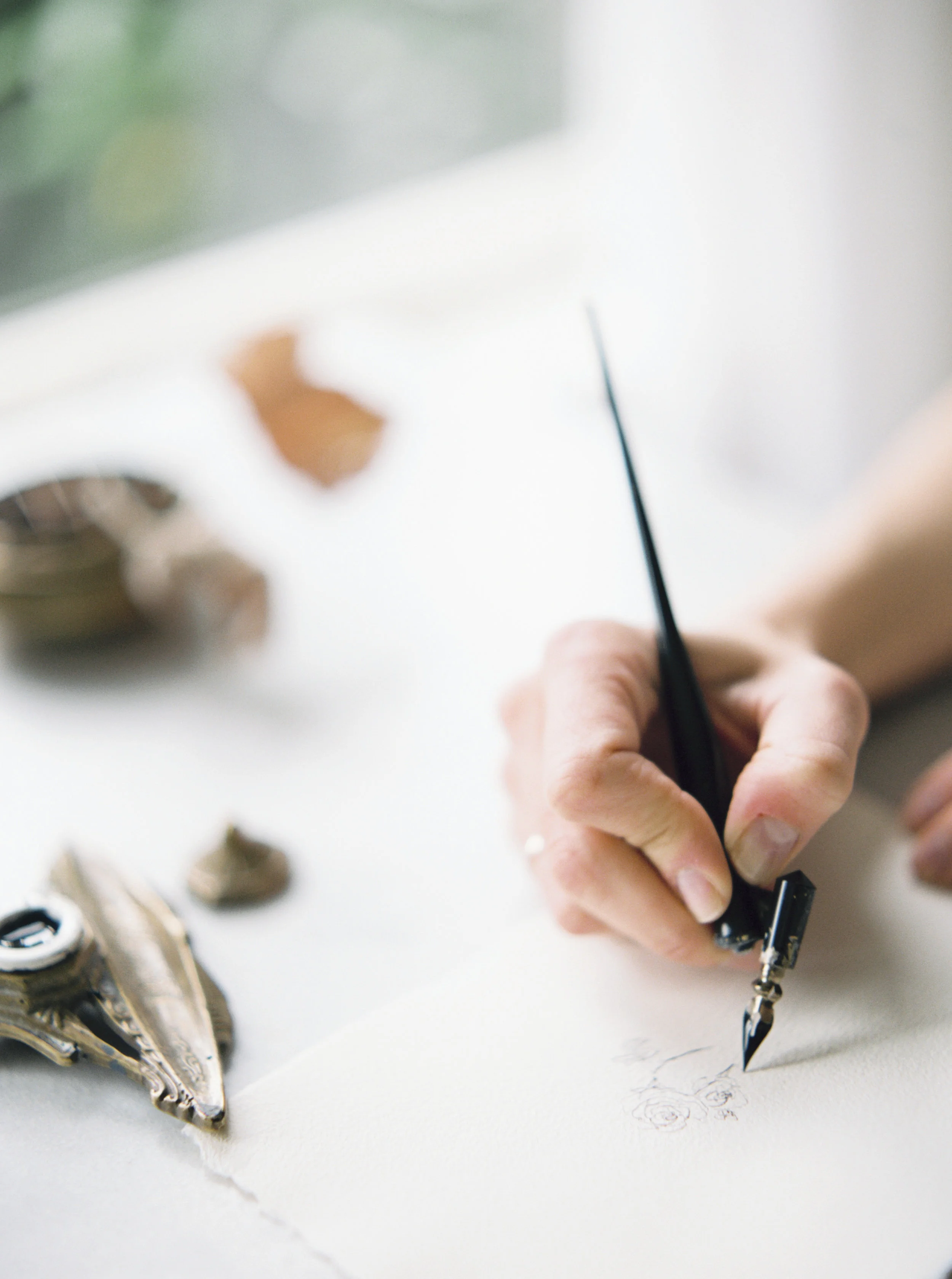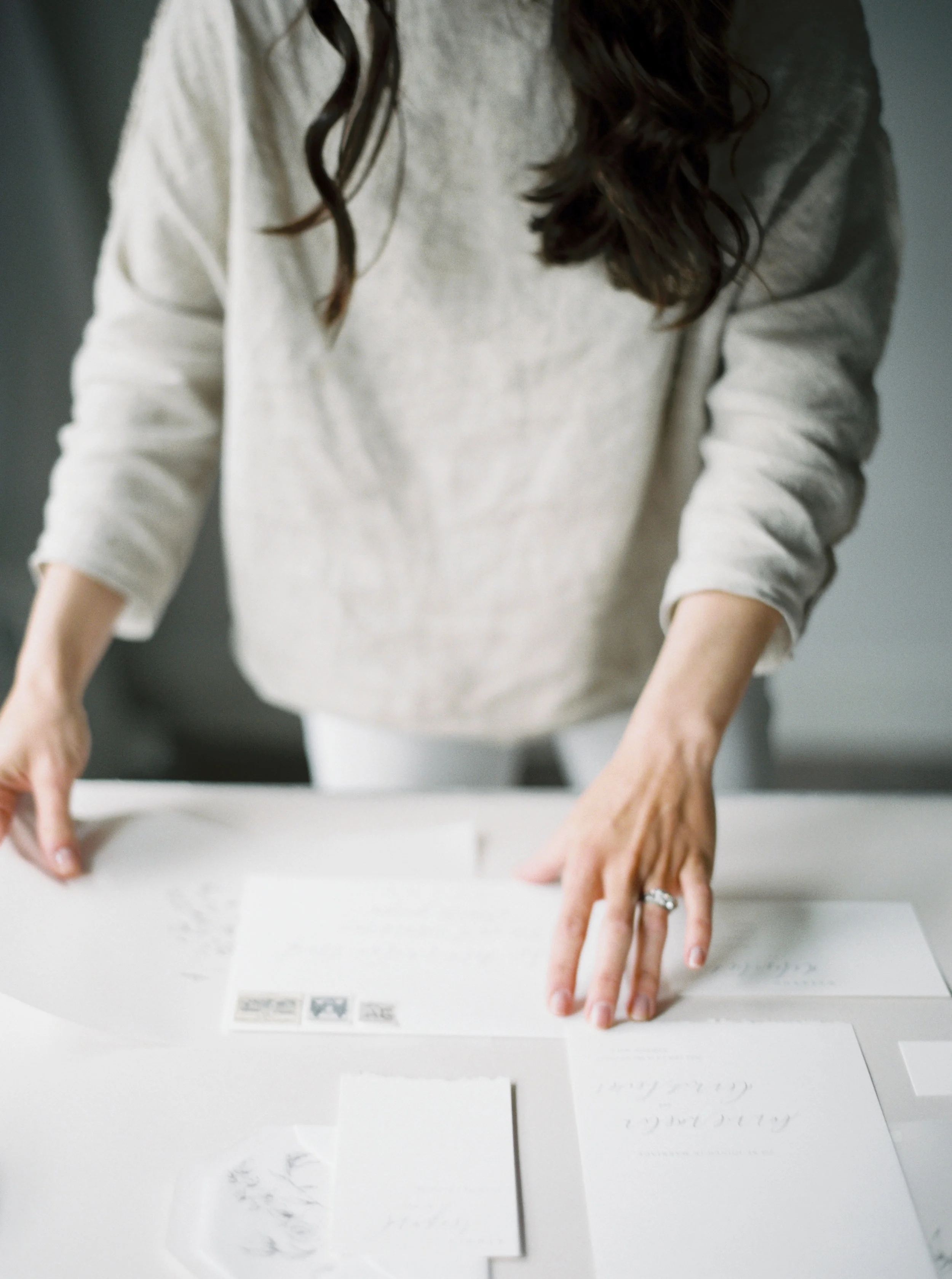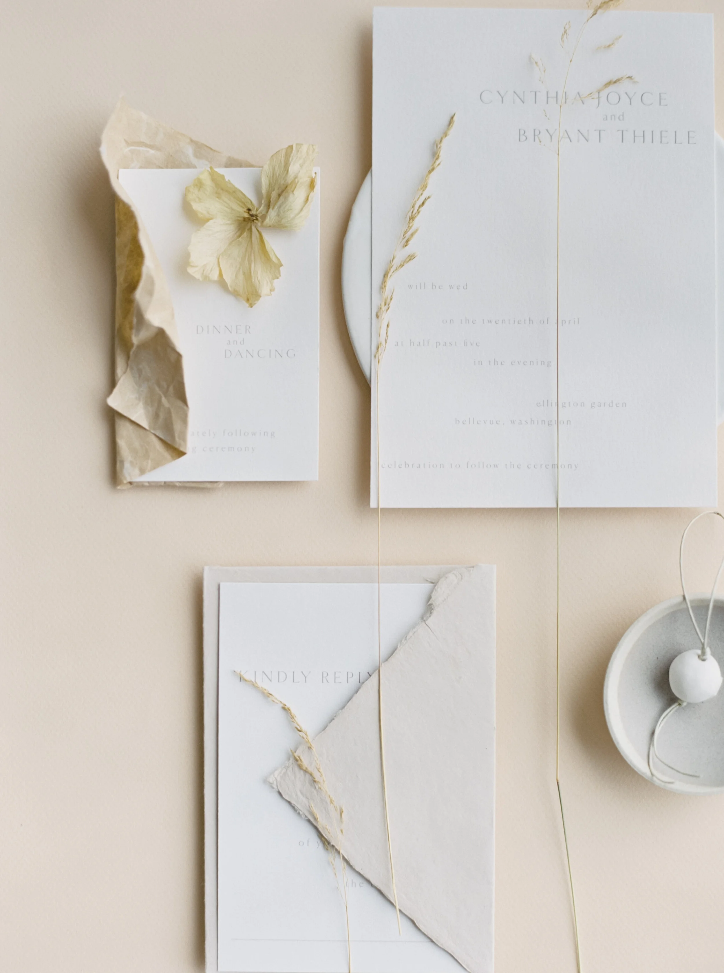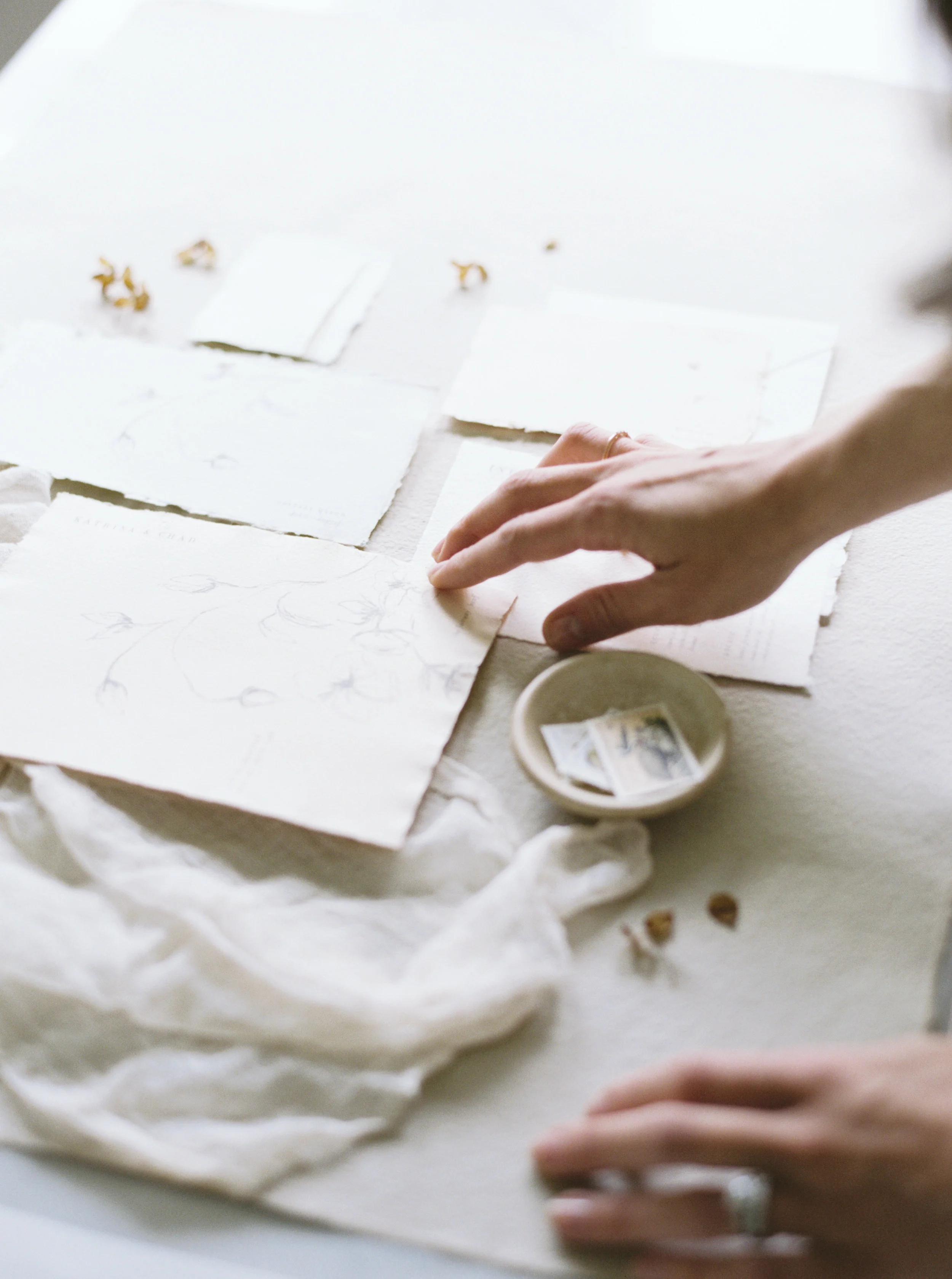 We create memorable paper suites for our clients with intentional, restrained design. We employ calligraphy, type, and illustration as well as our vast knowledge of paper and texture in order to evoke the feeling and set the tone for their special event. More information about our custom stationery process can be found here.