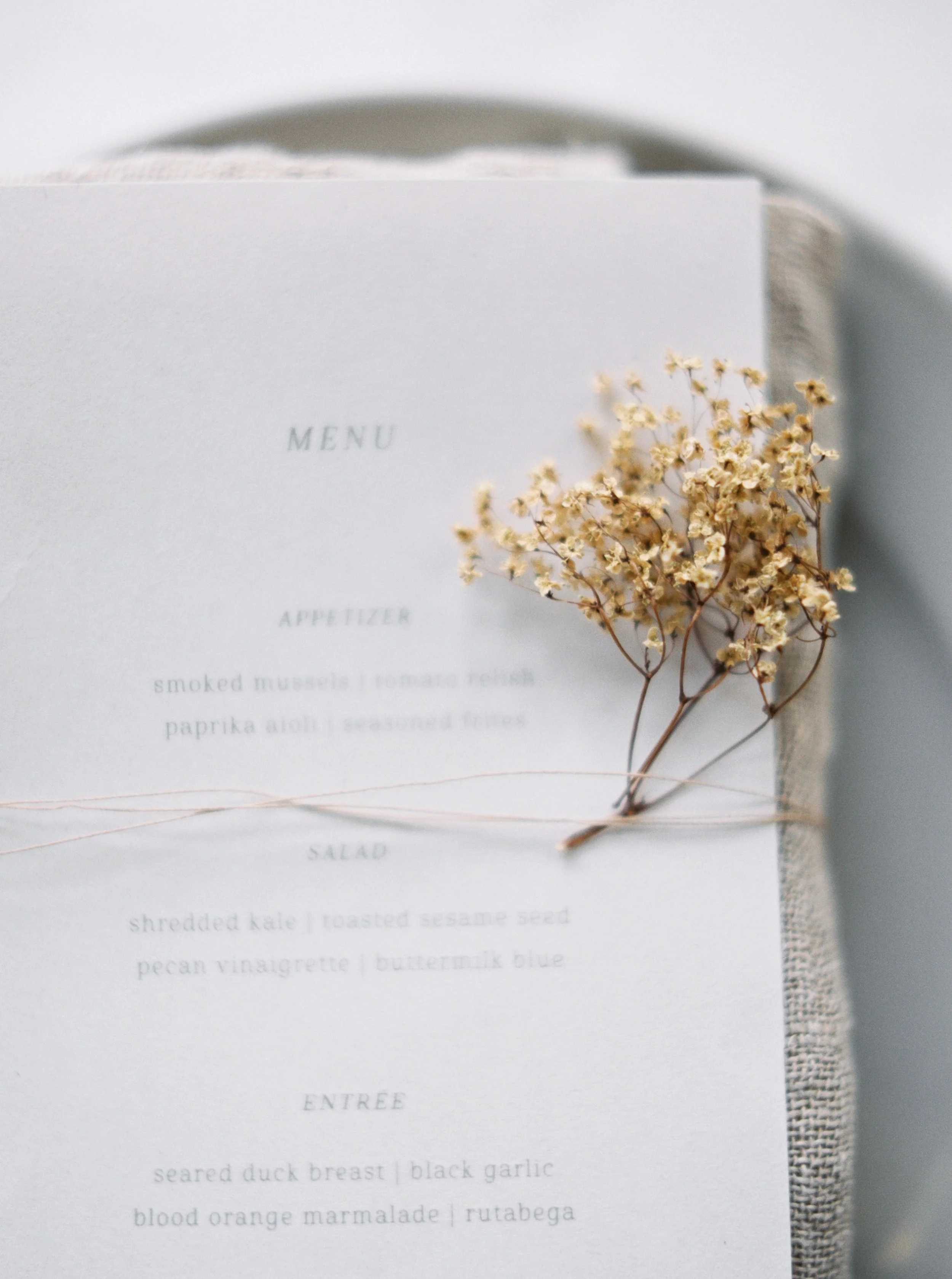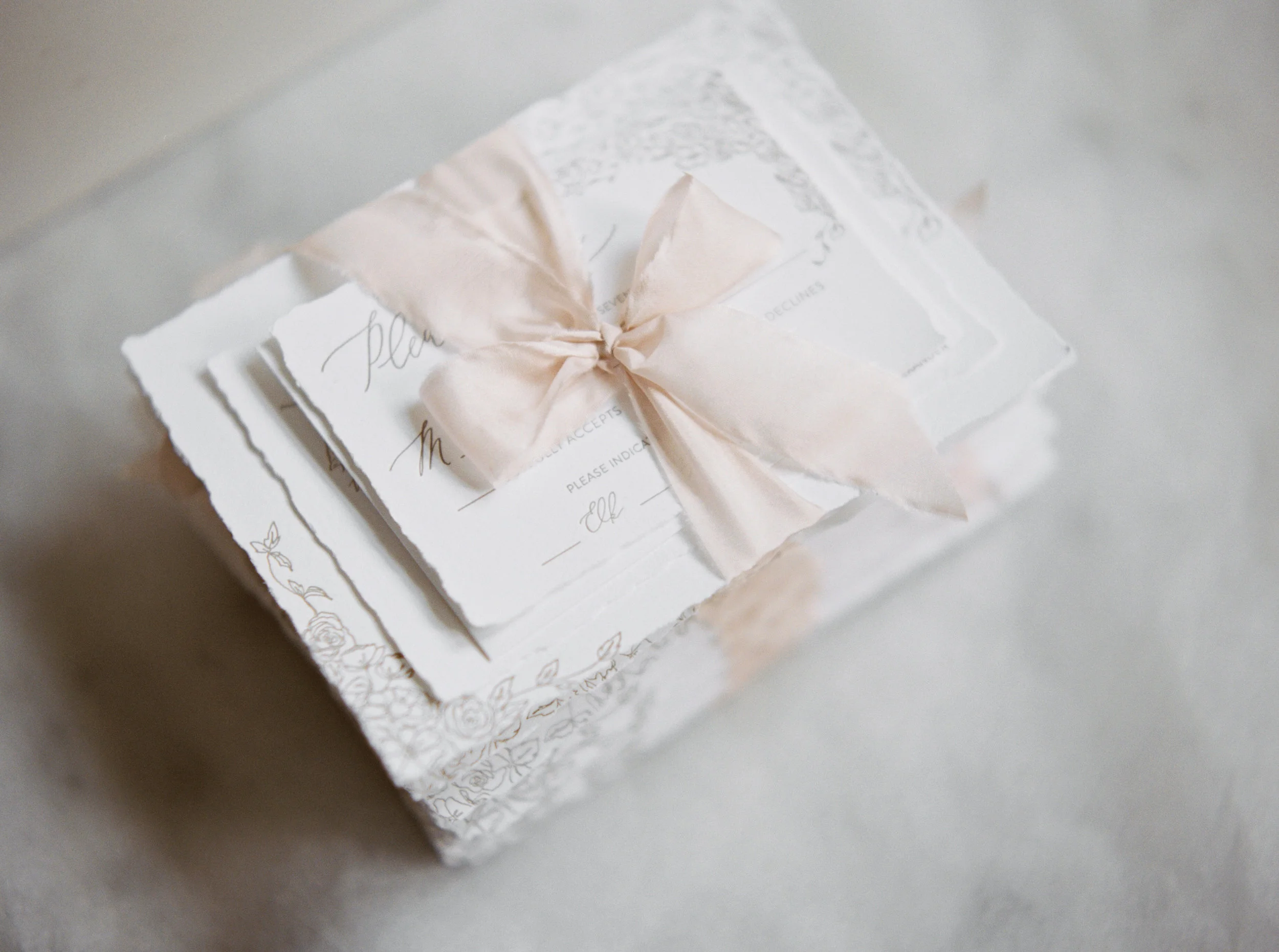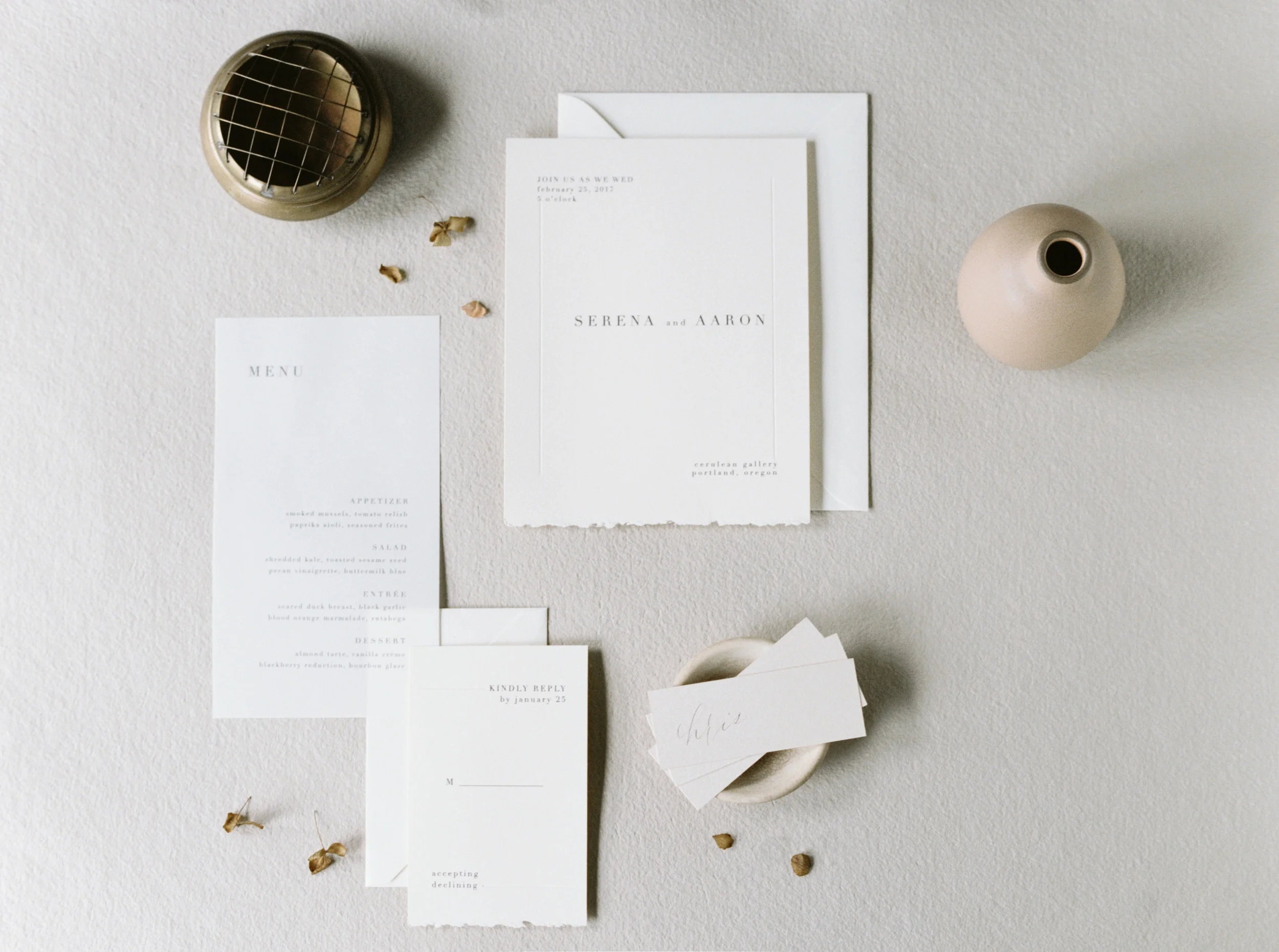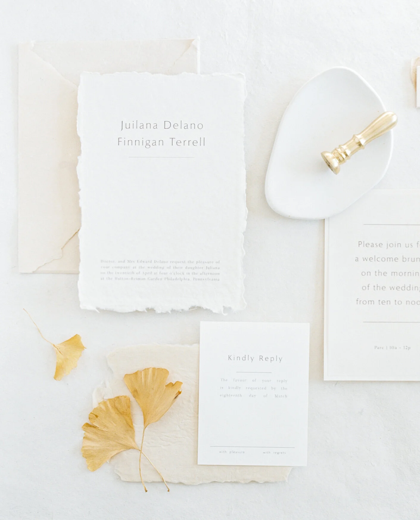 We create memorable paper suites for our clients with intentional, restrained design. We employ calligraphy, type, and illustration as well as our vast knowledge of paper and texture in order to evoke the feeling and set the tone for their special event. More information about our custom stationery process can be found here.